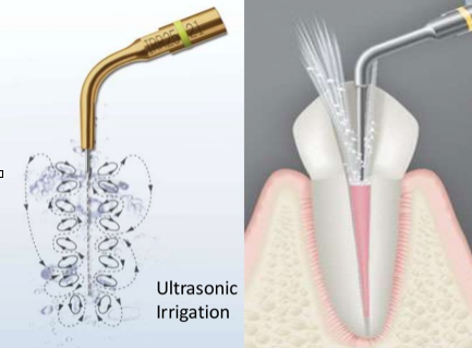 如上圖所示,錯綜複雜的根管,不是我們想像中的“不就是把神經抽掉”那麼簡單,殘留的細菌和毒素可能躲在狹縫處無法以物理性清潔到的地方,那就是要靠超音波器械的沖洗,來降低細菌和毒素的殘留,提高根管治療的成功率。
