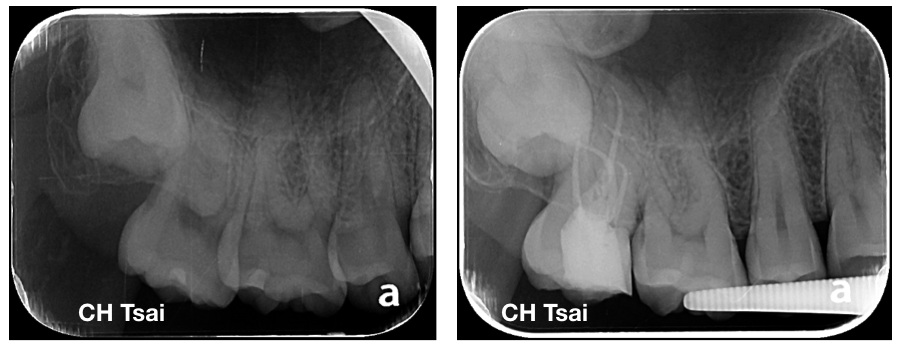 彎曲根管 發表於2023-06-032023-06-11 作者: 蔡承翰 in 未分類 右上顎第二大臼齒,牙髓炎伴隨自發性疼痛,經其他牙科醫師轉診治療; 全程在顯微鏡下完成根管治療療程。 完成治療後症狀緩解,建議病患繼續製作牙冠補綴物保護齒質。 右圖治療後可見近心牙根極度彎曲,且有額外(MB2)根管。 分享此文: 按一下即可分享至 X(在新視窗中開啟) X 按一下以分享至 Facebook(在新視窗中開啟) Facebook 喜歡 正在載入... 相關 發表者:蔡承翰 中華民國牙髓病專科醫師 檢視 蔡承翰 的所有文章